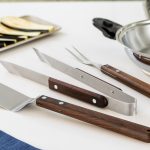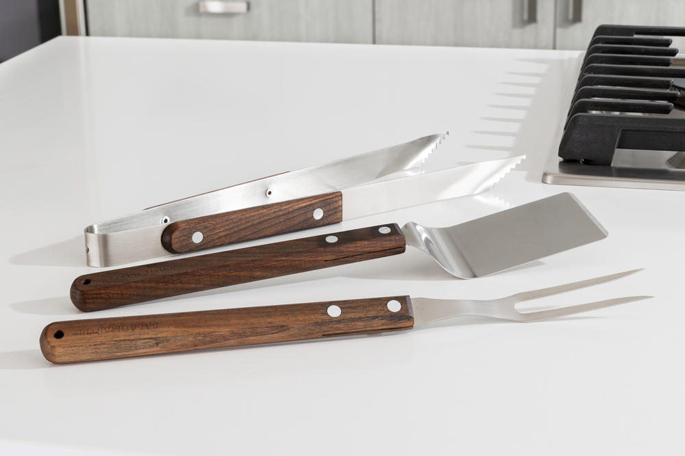 Elevate your grilling game with our premium grill accessories set, designed to enhance your barbecue experience. This set includes a spatula, fork, and tongs, each measuring 15″ in length—perfect for use with our indoor electric grill or the Stovetop Grill Pan. Crafted from durable stainless steel and featuring elegant riveted walnut handles, these tools combine strength and style for an exceptional grilling experience.